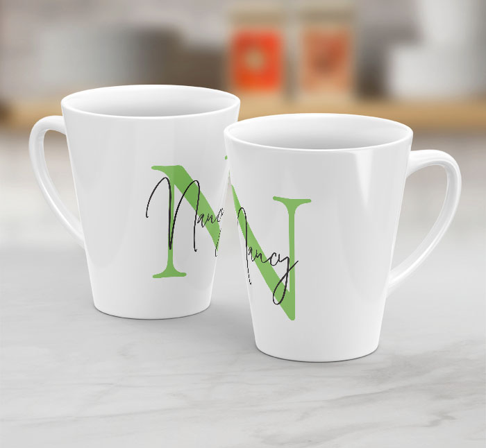 Choose from one of our pre-made latte mug designs where you can simply add a name to personalise making this personalised alphabet n is for latte mug a great gift idea.