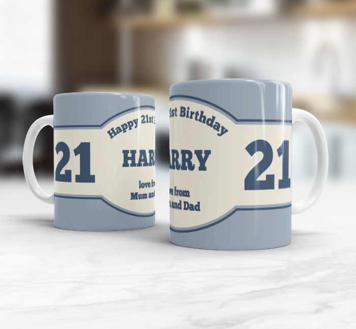 Easily add your own details to make your personalised blue 21st birthday mug truly personal.