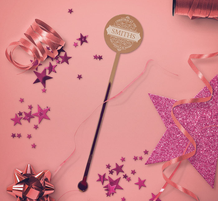 These quality personalised decorative christmas drink stirrers are individually laser cut and engraved from 3mm Mirror Acrylic in a choice of colours.