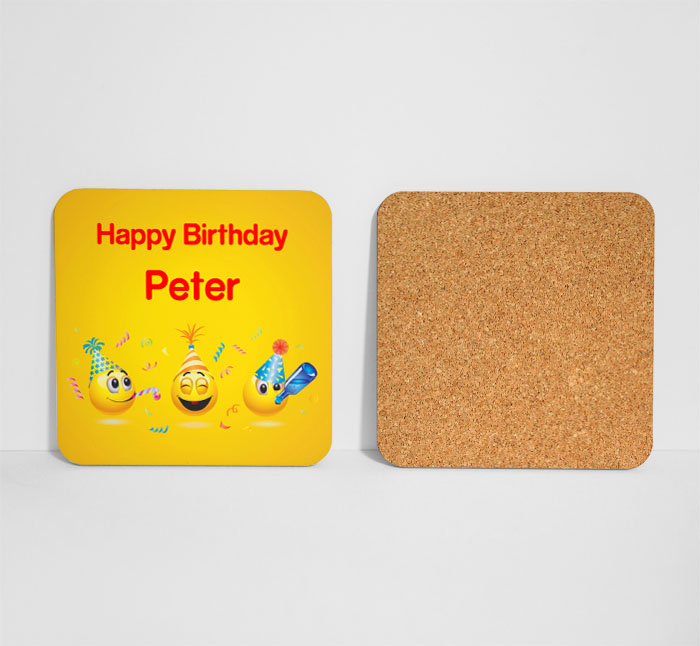 Easily add your own details to make your personalised emoji party coasters truly personal.