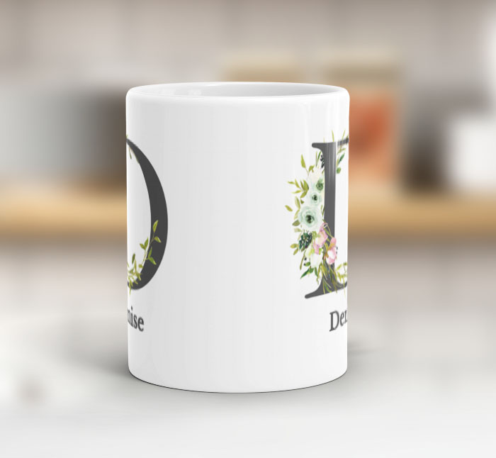 Choose from one of our pre-made mug designs where you can simply add a name to personalise making this personalised floral initial letter d mug a great gift idea.