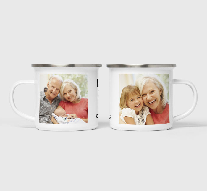 Choose from one of our pre-made enamel mug designs where you can simply add a name to personalise making this personalised love you grandma enamel mug a great gift idea.