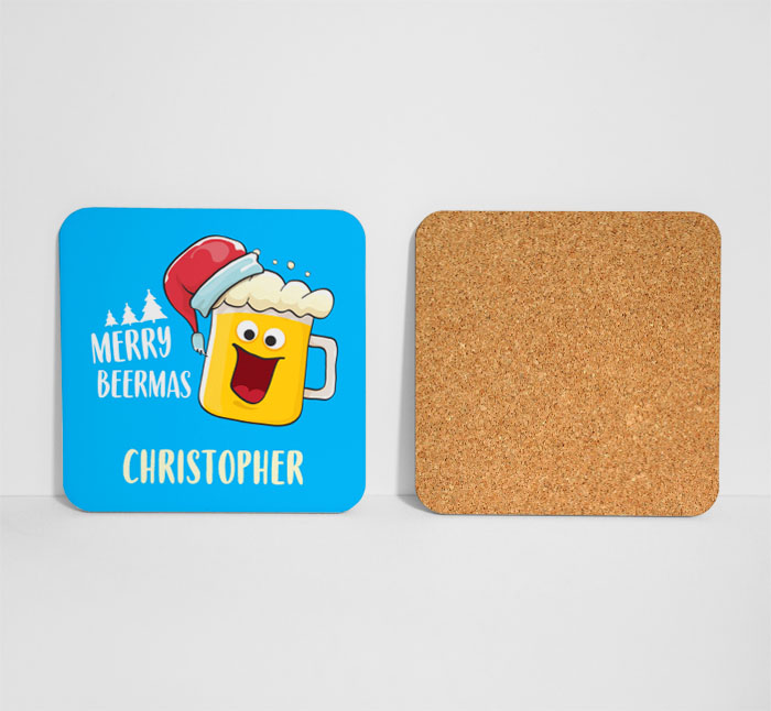 Easily add your own details to make your personalised merry beermas coasters truly personal.