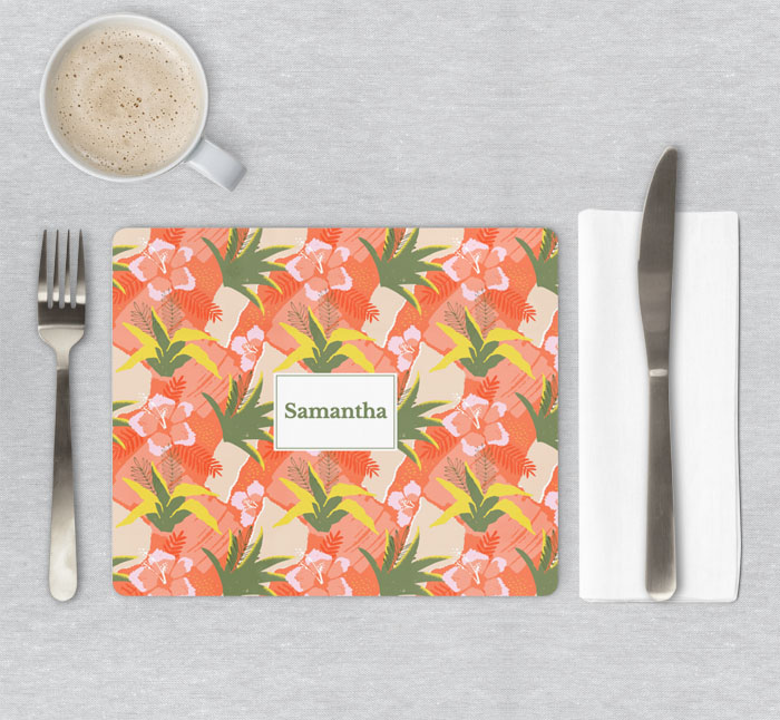 Easily add your own details to make your personalised verdant hisbiscus tea placemats truly personal.