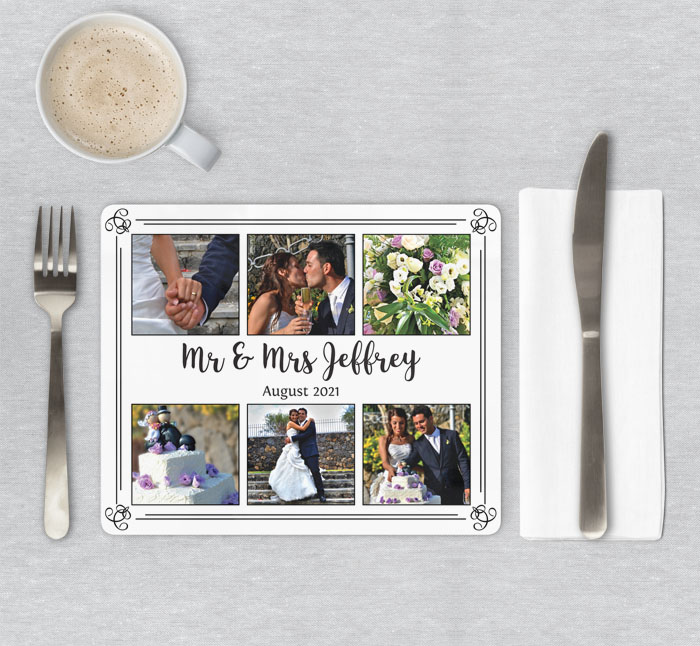 Easily add your own details to make your personalised wedding photos upload placemats truly personal.