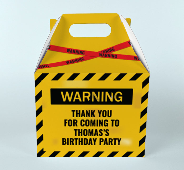 These quality personalised party boxes are printed on white card and come ready assembled so there is no gluing required. The top features an easy close design and a carry handle which makes them perfect for your party guests to take home.